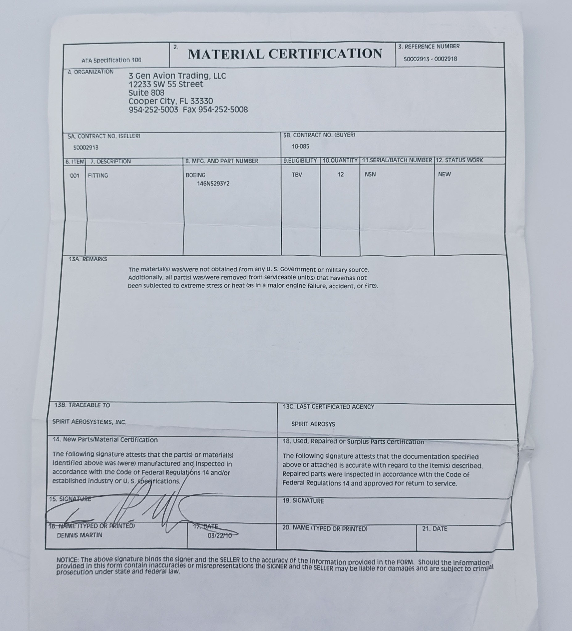 | Сертификат вид: | FAA/United States |