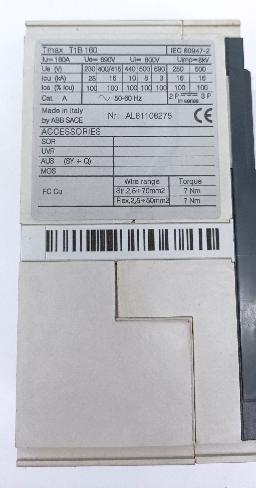 | Партномер: | Tmax T1B, Sace Tmax T1B, 1SDA050870R1, 8kA, 160a, 16a |