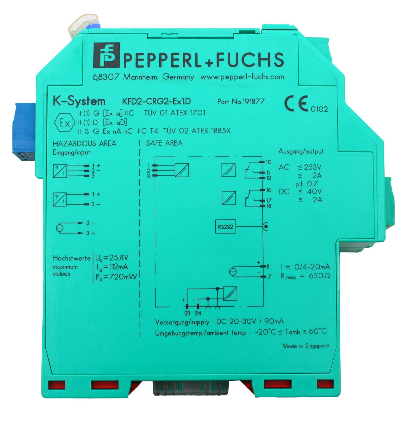 Product information "Барьер искрозащиты Pepperl+Fuchs KFD2-CRG2-Ex1D Трансмиттер 191877, D-68307"