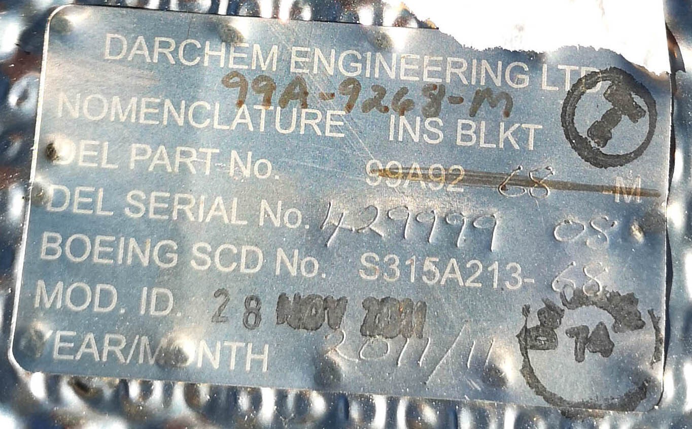 теплоизоляционное покрытие внутренней части створки реверсивного устройства пассажирского самолета га боинг 737. выполнено из стекловолокна. ч/н 99a9267m с/н 61395919 - 1шт., ч/н 99a9268m с/н 61395214 - 1шт.