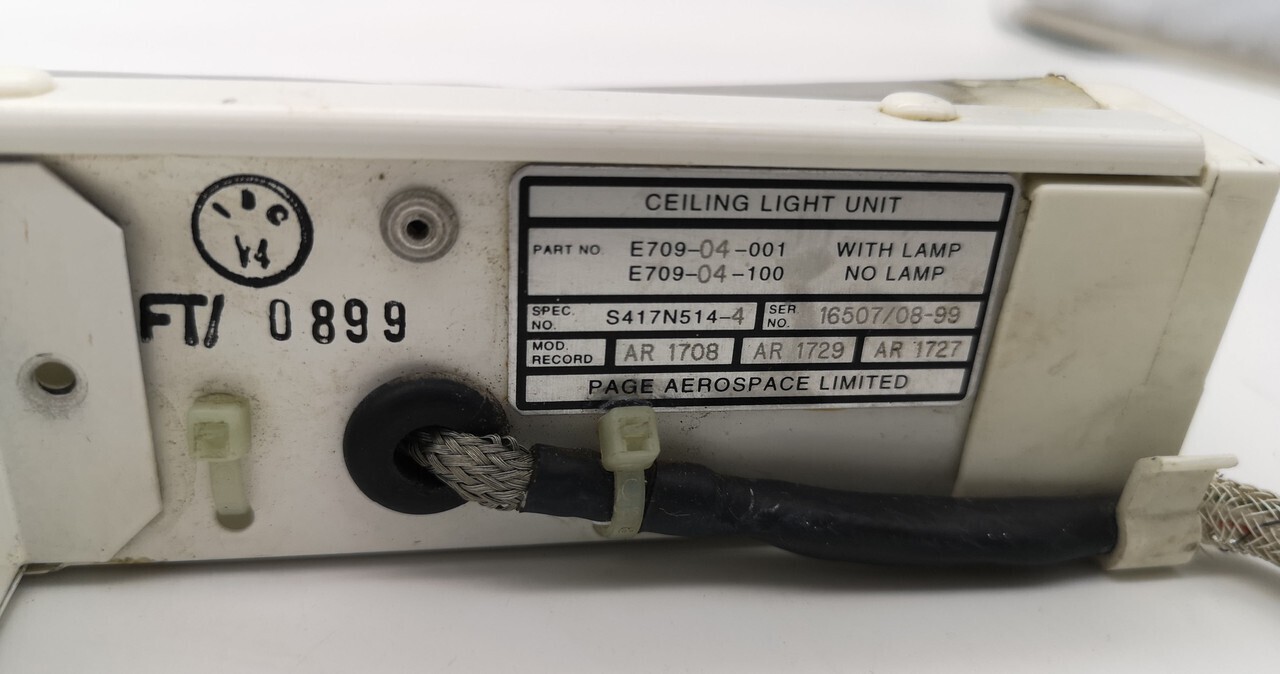 электрический светильник в алюминиевом корпусе, с люминесцентной лампой в комплекте. предназначен для освещения пассажирского салона пассажирского самолета га боинг 737. ч/н e709-04-001 с/н 22018/11-2008 - 1шт.