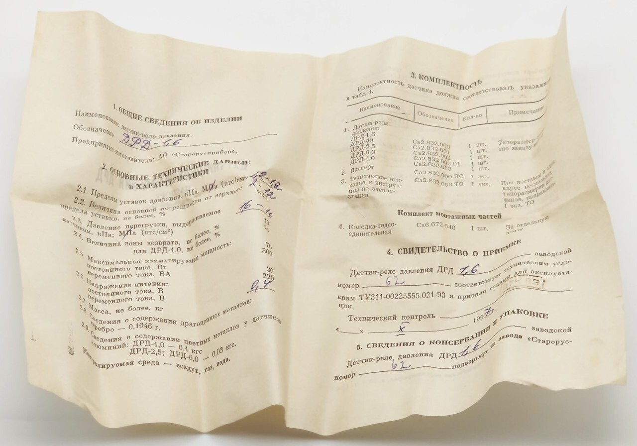 Product information "Датчик-реле давления сильфонный ДРД-1,6"