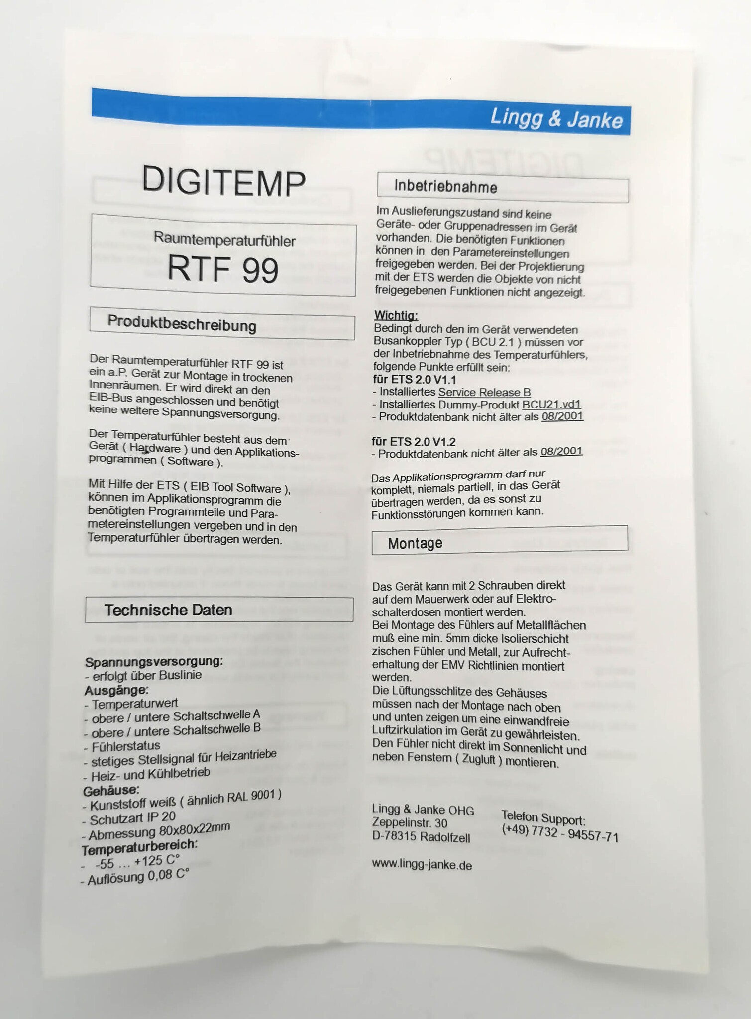 Product information "Датчик температуры KNX, LINGG-JANKE -55+125оС RTF99 89140"