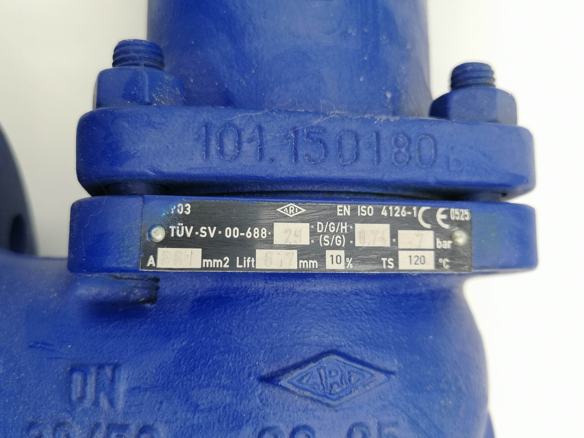 Клапан предохранительный, производства "Ari-armaturen" (Германия), из чугуна и стали, обеспечивают полное открытие проходного отверстия при превышении давления до 5% (пар, газ) и 10% (жидкость).