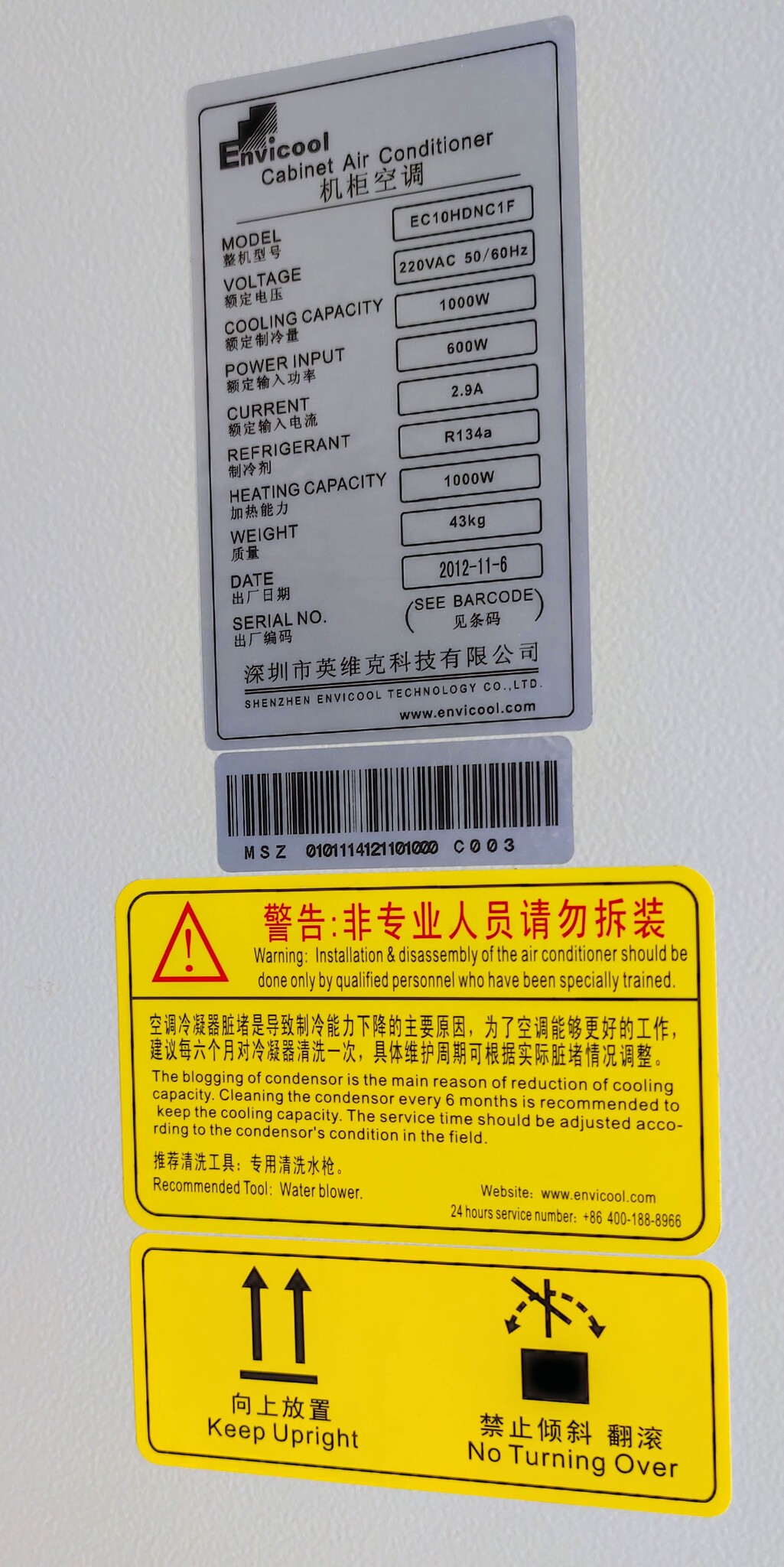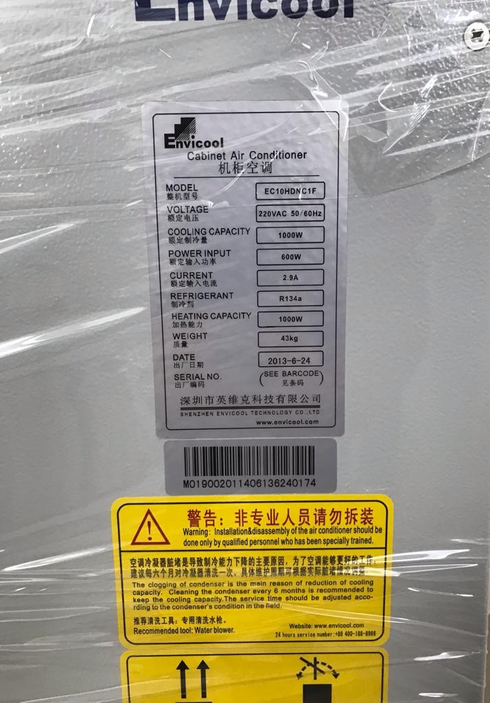Кондиционер шкафной 1000Вт Envicool EC10HDNC1F, R-134a, 220V холодильный агрегат навесной