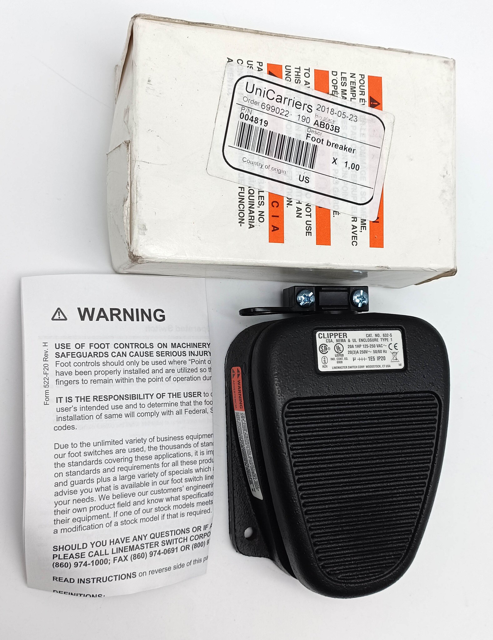 Переключатель ножной 632-S LINEMASTER 004819 Unicarriers AB03B (Выключатель)