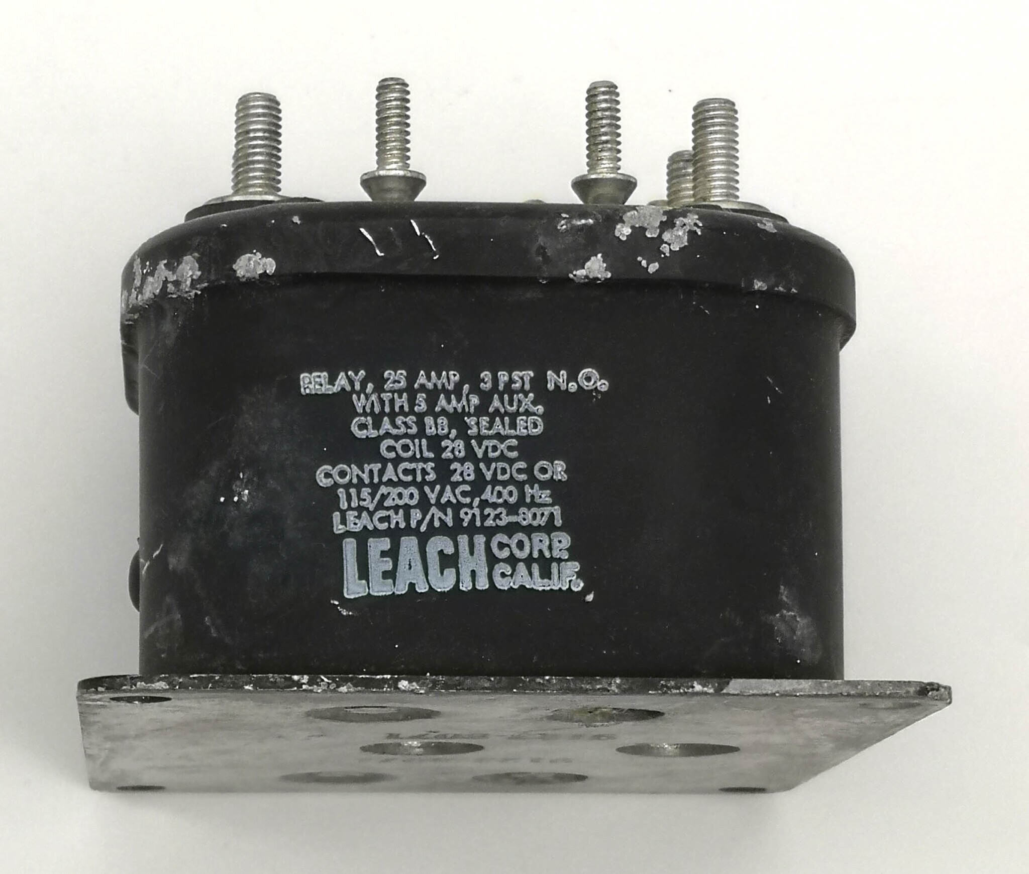 электромагнитное реле коммутационной коробки, используемой в цепи управления механизмом триммирования руля высоты гражданского пассажирского самолета боинг 737. расположено в кабине пилотов. поставляется в комплекте с крепежом. напряжение 115в/400гц переменного тока, сила тока 15а. ч/н 9123-8071 - 1шт., маркировка 670- 1093 6715