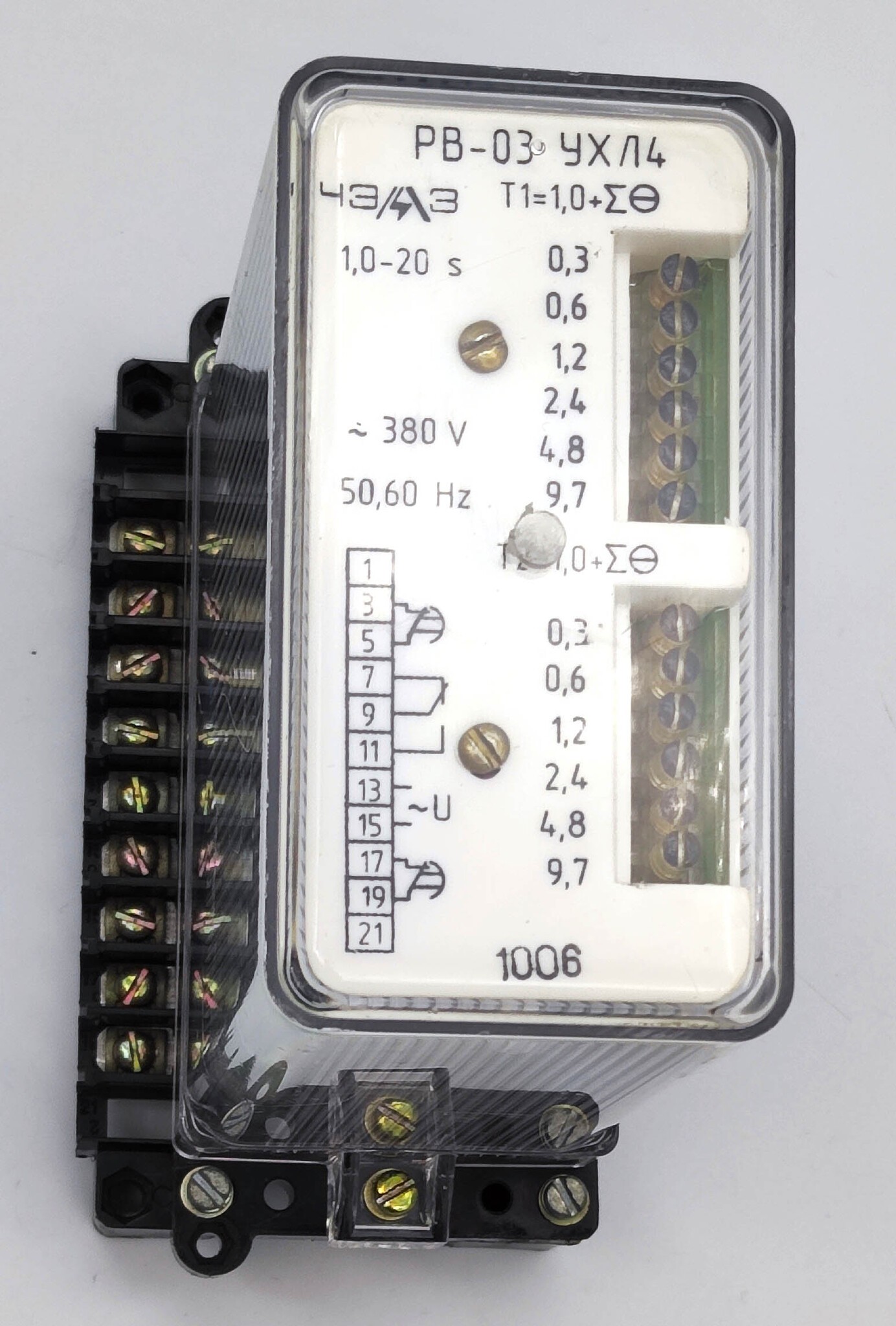 Реле времени ЧЭАЗ РВ-03 УХЛ4 ~380В 50Гц в.в 1-20с (260070643 01) ТУ16-523.577-79