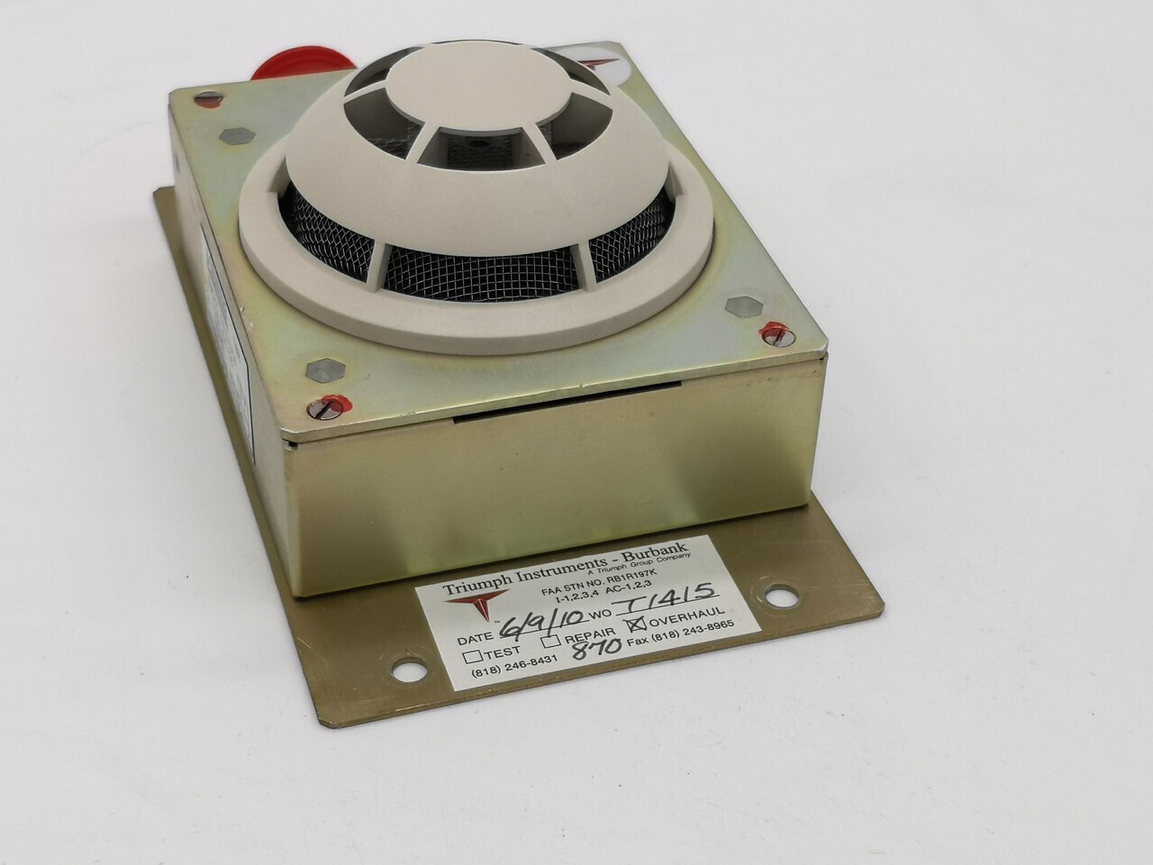 датчик дыма (б/у), предназначен для определения наличия задымления в багажном отделении пассажирского самолёта га боинг 737. датчик дыма состоит из фотоэлемента и светодиода. источников радиоактивного излучения не содержит. ч/н cgab1400-00 с/н 4627 - 1шт.